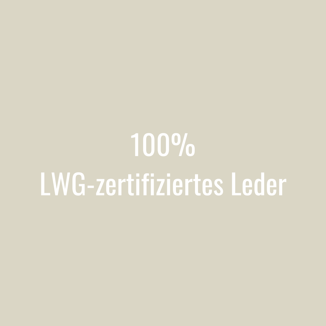 100% unseres Leders, mit dem wir arbeiten, ist LWG-zertifiziert und wird daher verantwortungsvoll bezogen. Besonders wichtig ist, dass entstehendes Abwasser nicht einfach wieder in Flüsse und Seen geleitet wird, sondern verantwortungsbewusst gefiltert, aufbereitet und wiederverwendet wird. Wir bieten damit Produkte an, die nach umweltgerechten besten Praktiken hergestellt wurden.