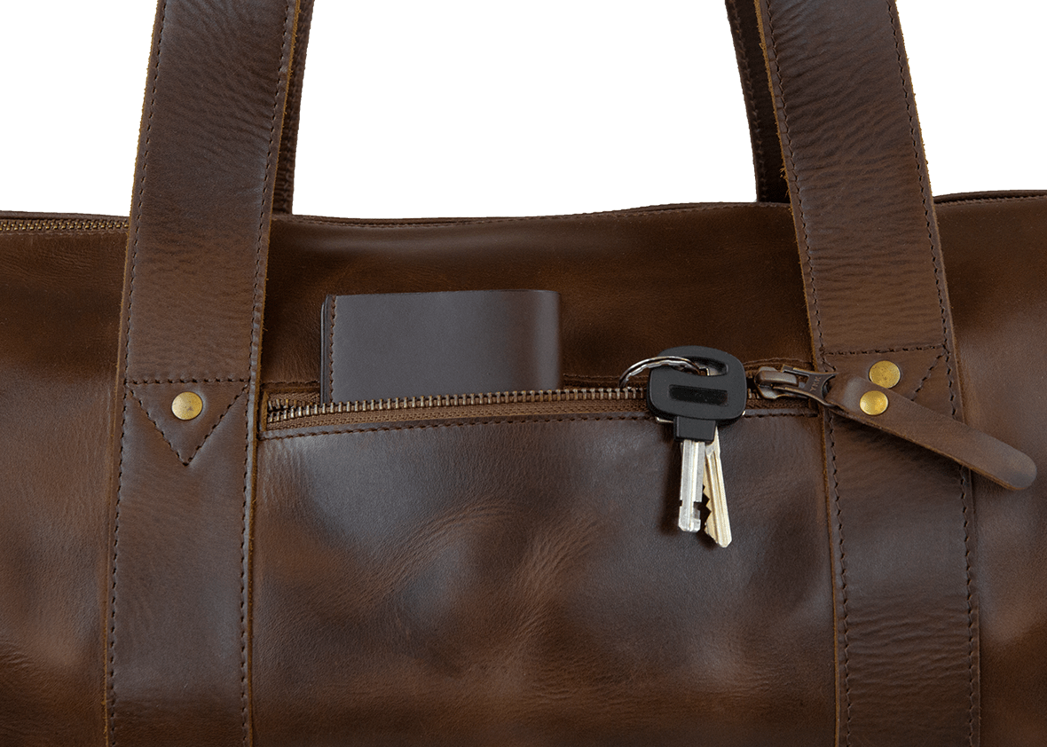 Bei Chap haben wir mit Absicht auf einen Schultergurt verzichtet, da diese Ledertasche den Seesäcken nachempfunden ist. Wir wollten ein minimalistisches Design beibehalten und gleichzeitig sicherstellen, dass die Reisetasche bequem in der Hand sowie auch über der Schulter getragen werden kann. Die verstärkten Tragegriffe sind leicht gepolstert, dass der Duffle Bag in jeder Situation einen hohen Tragekomfort bietet. Das handgegerbte Leder ist sehr robust und schützt all Deine Wertgegenstände und Essentials vor äußeren Einwirkungen.