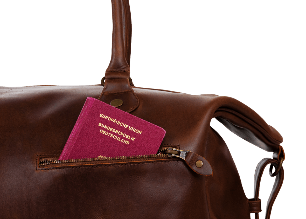 Unseren Designer-Weekender kannst Du nicht nur auf eine, sondern auf drei verschiedene Arten tragen und in Szene setzen. Eine Option ist, ihn leger über der Schulter mittels dem abnehmbaren, extra gepolstertem Schultergurt zu tragen. Diese Variante sorgt für optimale Bewegungsfreiheit, Kaffee und Zeitschrift für die Fahrt kannst Du so ganz entspannt auf dem Weg zum Zug besorgen. Also klare Empfehlung von uns, sich den Schultergurt auch zu besorgen. Die zusätzlich verstärkten Henkel des Weekenders geben Dir die Möglichkeit, zwischen zwei weiteren Tragevarianten zu wählen. Entweder Du trägst Deinen neuen Lederweekender sicher in der Hand oder ganz bequem über der Schulter.