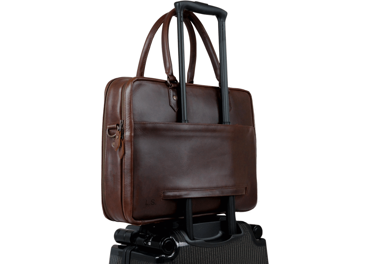 Wahrscheinlich hat jeder von uns schon einmal folgendes Szenario durchlebt: Du stehst unter Zeitdruck und bist gestresst, weil der nächste Anschlussflug schon wartet und rennst von Terminal zu Terminal. Währenddessen versuchst Du Deine Aktentasche unter den Arm zu klemmen, Deinen Trolley hinter Dir herzuziehen und gleichzeitig nichts zu verlieren. Panik! Unsere Business-Aktentasche Albert löst dieses Problem sehr elegant mit der integrierten Trolley-Lösung auf der Rückseite der Aktentasche. Einfach den Reißverschluss öffnen und die Aktentasche über den Griff Deines Rollkoffers schieben, das Leben kann so einfach sein. So stellen auch Flughafensprints kein Problem mehr da, sondern sind einfach nur der Ersatz für Dein fehlendes Fitness-Programm.