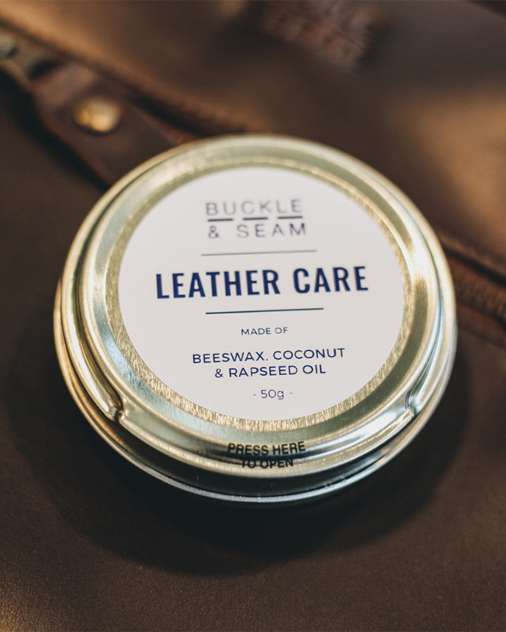 Deine neue Ledertasche braucht zunächst keine besondere Pflege. Die natürlichen Öle und Wachse, die nach dem Gerbprozess in unser Leder eingearbeitet werden, bieten genug Schutz und machen das Leder geschmeidig. Damit Du möglichst lange Freude an Deinem Buckle & Seam Produkt hast, empfehlen wir Dir, das Leder einmal im Jahr mit unserer Lederpflege zu behandeln. Solltest Du raue und trockene Stellen auf dem Leder sehen, dann ist die Lederpflege dringend Notwendig.